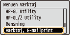 Hvis udskrivning af e-mails fra POP3-mailserveren er aktiveret, kan du også manuelt modtage og udskrive e-mails. Hvis du ønsker at oprette forbindelse til mailserveren, før der automatisk modtages e-mails, eller hvis maskinen er konfigureret til at forhindre automatisk modtagelse af e-mails, skal du følge nedenstående fremgangsmåde til manuelt at modtage e-mails.