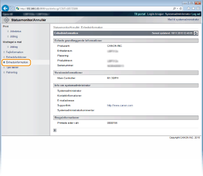 [Administrationsindstillinger] på siden [Indstillinger/Registrering] (Indstilling af systemadministratorens adgangskode).