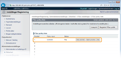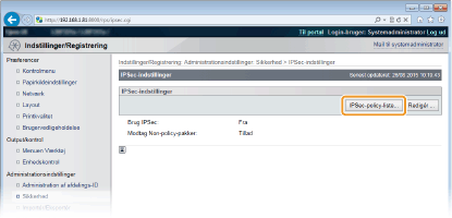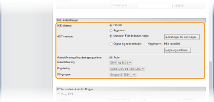 Før konfiguration af IPSec-kommunikationsindstillingerKontroller IPSec-indstillingerne i det styresystem, som maskinen skal kommunikere med. En forkert kombination af styresystemets indstillinger og maskinens indstillinger vil deaktivere IPSec-kommunikation.