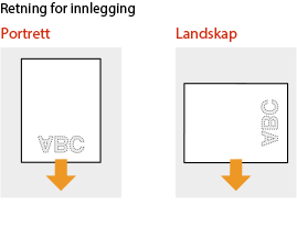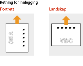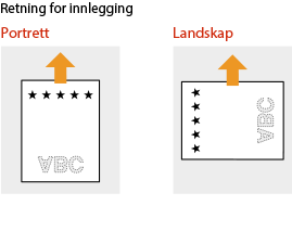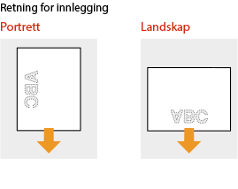Når du bruker papir som er forhåndstrykt med en logo, må du ta hensyn til papirretningen når du legger det inn. Legg inn papiret på riktig måte, slik at utskriften utføres på riktig side av papiret med en logo.