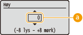 / til å justere tettheten.![]() Justering av tetthetAngi en "+"-verdi for å øke tettheten. Angi en "-"-verdi for å redusere tettheten.