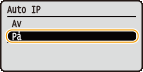 .Du kan bare bruke én av protokollene DHCP, BOOTP og RARP. Hvis den valgte protokollen er stilt til <På>, blir de andre to protokollene automatisk stilt til <Av>.