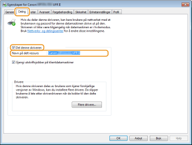 Installasjon av ekstra drivere starter. Vent til kategorien [Deling] vises igjen.