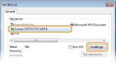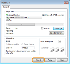 [ [Skriv ut]Hvis du skriver ut ved hjelp av denne metoden, er kun et begrenset utvalg av utskriftsinnstillinger tilgjengelig.