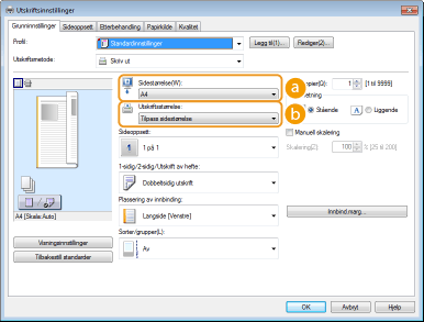 Det er enkelt å angi sideoppsett, innbindingsposisjon osv. intuitivt i forhåndsvisningsbildet. For mer informasjon, klikk på [Hjelp] på skjermbildet for skriverdriveren.