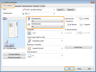 Velg papirformat i [Utskriftsstørrelse]