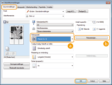 Du kan skrive ut én side av et dokument på flere sider. For eksempel, hvis du gjør et enkeltsidig dokument i A4-format ni ganger større, vil du få en plakat i format 3x3 A4 etter at du skriver ut dokumentet og limer det sammen.