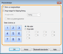 Innstillinger for plakatformat kan ikke velges når 2-sidig utskrift er aktivert. Velg [Enkeltsidig utskrift] under [1-sidig/2-sidig/Utskrift av hefte], og velg deretter en innstilling for plakatformat.
