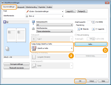 Klikk på [Hefte] for å angi detaljerte innstillinger om nødvendig