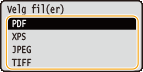 Når du ønsker å skrive ut en PDF-fil eller XPS-file, angir du <Auto> for å velge den optimale papirkilden automatisk.
