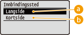 Angi om det skal innbindes langs langsiden eller kortsiden på de tosidete utskriftene når du bruker et innbindingsverktøy, slik som en stiftemaskin. Bruk