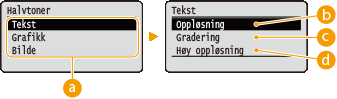 Velg bildedatatypen du ønsker å endre innstillingene for. Velg <Tekst> for tegn, <Grafikk> for linjer og figurer, eller <Bilde> for bilder, slik som fotografier.
