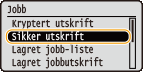 til å velge <Sikker utskrift>, og trykk på
