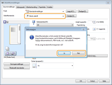 Velg [Sikret utskrift] i [Utskriftsmetode].