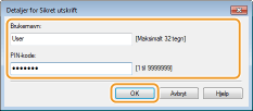 Skriv inn [Dokumentnavn], [Brukernavn], og [PIN-kode] og klikk på [OK].