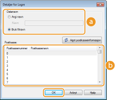 Et sted som brukes til å lagre data i SD-kortet kalles for en boks. Velg tallet på boksen som skal lagre dokumentet. Du kan tilordne et navn på boksen for å lette identifisering av boksen.