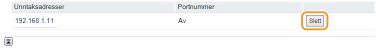 Velg en IP-adresse som skal slettes og klikk på [Slett].