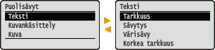 -painikkeilla. Kohdan tekstin ja taustan värit näkyvät käänteisinä, kun kohta on valittu.