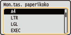 -painikkeilla <Mon.tas. paperikoko> ja paina
