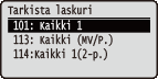 <101: Kaikki 1>, <113: Kaikki (MV/P.)>, tai <114:Kaikki 1(2-p.)>