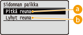 Jos valitaan <Säädä tulostuskohtaa> kohdassa <Käyttäjän ylläpito>, kunkin paperilähteen tulostuskohtaa voidaan hienosäätää. Käytettävissä olevien siirtoarvojen alue on -5,0 – +5,0 mm. Tulostuskohdan säätäminen