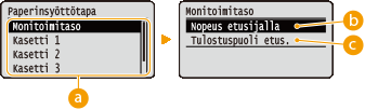 <Nopeus etusijalla> tai <Tulostuspuoli etus.>