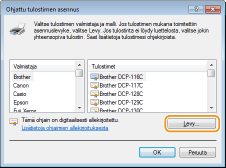 Jos haluat määrittää tulostusprotokollaksi IPP:n tai IPPS:n, asenna tulostinajuri noudattamalla alla olevia ohjeita. Tulostinajuri on mukana laitteen mukana tulleella User Software DVD-ROM ‑levyllä. Aseta User Software DVD-ROM -levy tietokoneen levyasemaan ennen menettelyn aloittamista.