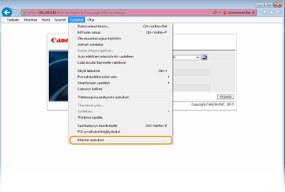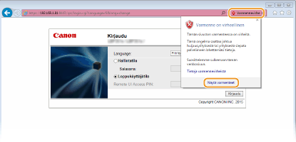 Kirjoita osoitekenttään "https://<laitteen IP-osoite>/" ja paina [ENTER]-näppäintä.