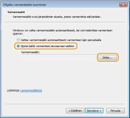 Valitse [Sijoita kaikki varmenteet seuraavaan säilöön] ja napsauta [Selaa].