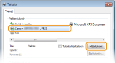 [ [Tulosta]Jos tulostat tämän menetelmän avulla, käytettävissä on vain rajoitettu määrä tulostustoimintoja.