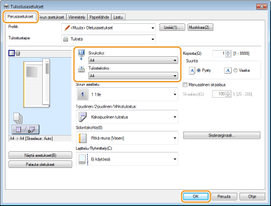 Valitse paperikoko kohdassa [Tulostekoko]