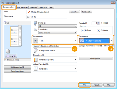 Valitse kohdassa [Sivun asettelu], montako sivua yhdelle arkille tulostetaan