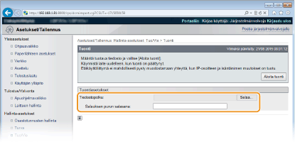 Syötä salasana, joka asetettiin asetusten viennin yhteydessä.