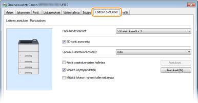 Napsauta [Laitteen asetukset] -välilehteä ja määritä tarvittavat asetukset.