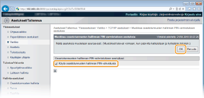 Valitse [Käytä osastotunnusten hallinnan PIN-vahvistusta] -valintaruutu