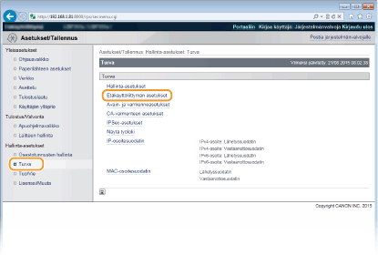 Valitse [Turva]  [Etäkäyttöliittymän asetukset].