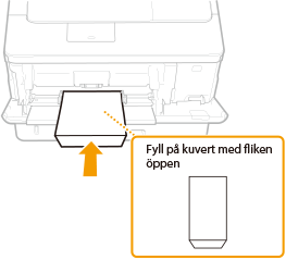 Fyll på kuvert i stående riktning (med kortsidan mot enheten) och med sidan utan klister (framsidan) vänd nedåt. Det går inte att skriva ut på kuvertets andra sida.