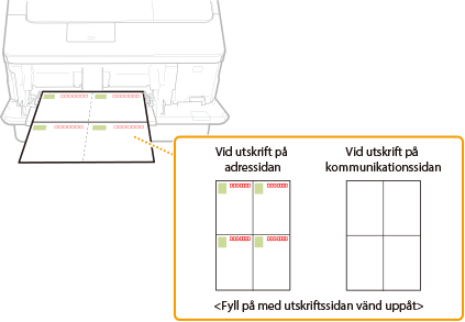 I det här avsnittet beskrivs hur du fyller på kuvert eller vykort i rätt riktning samt vad du måste göra innan du fyller på kuvert eller vykort. En beskrivning av hur du fyller på kuvert eller vykort i universalfacket finns i Fylla på papper i multiutmatningsfacket.