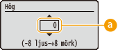 / för att justera tätheten.![]() Justering av tonertäthetAnge ett "+"-värde för att öka tätheten. Ange ett "-"-värde för att minska tätheten.