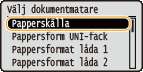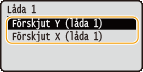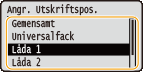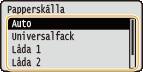 Välj den papperskälla som du vill kontrollera utskriftsplaceringen för och tryck på