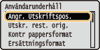 Om ett dokument skrivs ut förskjutet eller utanför utskriftsområdet ska du justera utskriftspositionen. Du kan justera utskriftspositionen för respektive papperskälla.