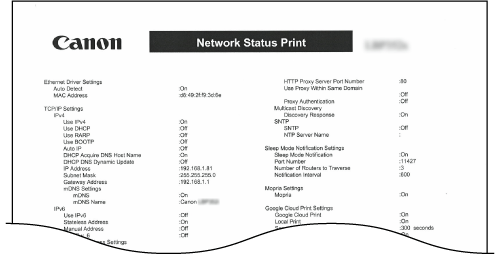 Nätverk). Säkerhetsinformation, inklusive adressfilter- och IPSec-inställningar skrivs också ut.