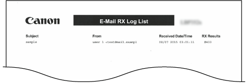 Du kan kontrollera en logg som en lista med ämne och mottagningsdatum/-tid för e-postmeddelanden som har tagits emot i enheten.