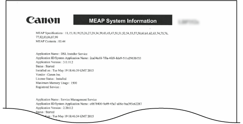 Du kan kontrollera en lista med information om MEAP-program som är installerade i enheten och MEAP-systemprogram när MEAP-funktionen är aktiverad.