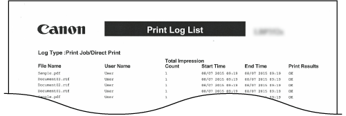 Du kan skriva ut en lista med loggen över utskrivna dokument från datorn.