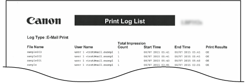 Du kan skriva ut en lista med utskriftsloggen över mottagna e-postmeddelanden.