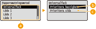 Asterisker (*)Inställningar som är markerade med en asterisk (*) visas inte alltid, beroende på andra inställningar och om pappersmataren eller SD-kortet (dessa är tillbehör) har installerats i enheten.