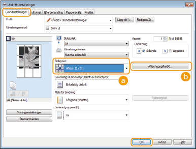 Du kan skriva ut en sida av ett dokument på flera sidor. Om du till exempel gör ett ensidigt dokument i A4-format nio gånger större, får du en affisch som är i 3 x 3 A4-formatsstorlek när du har skrivit ut dokumentet och klistrat ihop det.