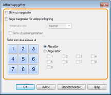 På följande skärm kan du göra inställningar för ramar och fästmarginaler. Klicka på [Hjälp] på skrivardrivrutinens skärm för mer information.