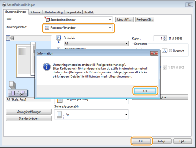 Välj [Redigera/förhandsgr] i [Utmatningsmetod].